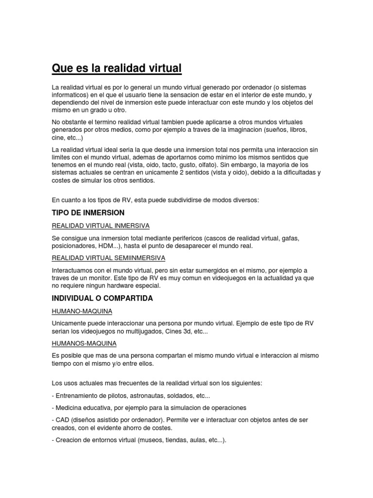 Que es la realidad virtual: Tipo De Inmersion | Realidad virtual | Mundo virtual